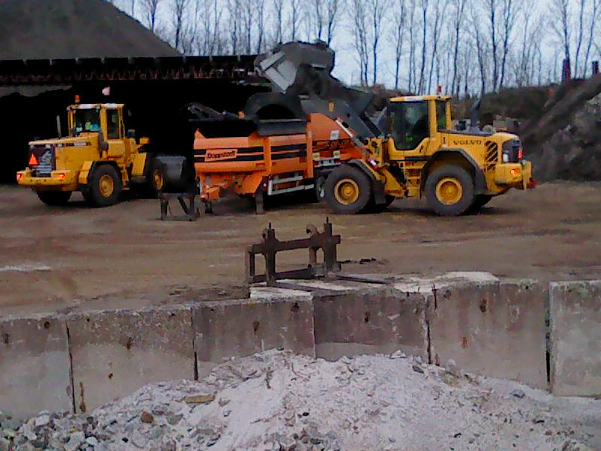 Två flisekipage som tar 3*45 kubikmeter containers och ett schakt/material-ekipage.